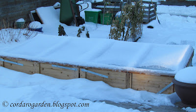 As you can see in this picture from last year, the greenhouse will go over the one small bed where 4 tomatoes will be sown and I will sow 4 in the other smaller bed with Kozy Koats and 2 in either this front bed or the side bed with Kozy Koats. The greenhouse goes up in late winter and comes down once I have all of the plants planted.